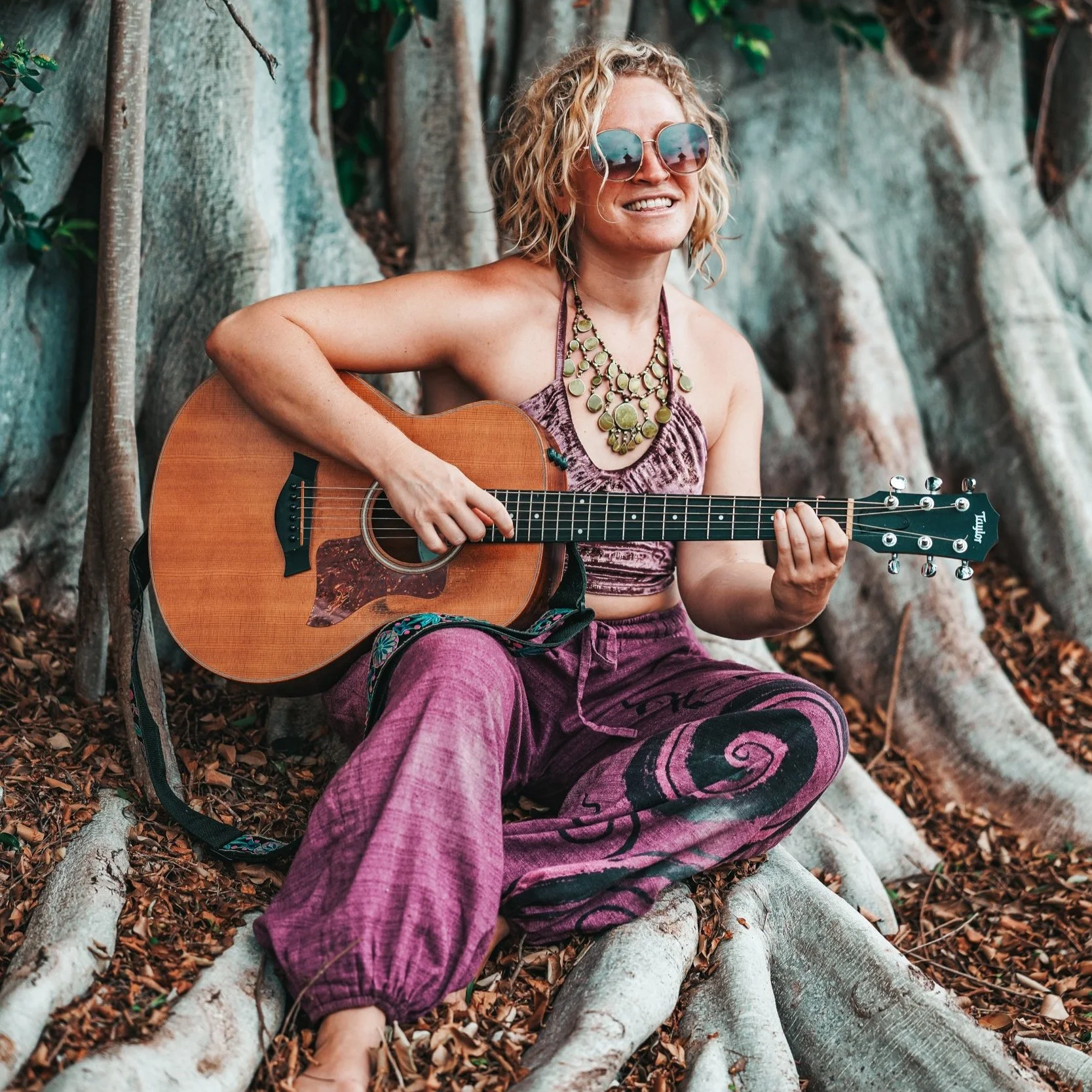 In 2021, Arielle moved to the Big Island of Hawaii. Upon arriving on the land, was intuitively guided to begin working with a 7-bowl chakra set of 432 hz crystal singing bowls, and immersed herself in the power of frequency to heal, uplift, and transform the human body/consciousness on a physical, emotional, and spiritual level. She quickly began offering the closing sound healings at Ecstatic Dances, weaving the sound bowls, her voice, and other shamanic percussive instruments into harmonic soundscapes to close, ground, and support individuals in integrating these peak ecstatic experiences of movement and dance. Along the way, she also fell in love with the heartbeat of the drum, and is often found weaving the resonants percussive elements of the djembe into her craft.